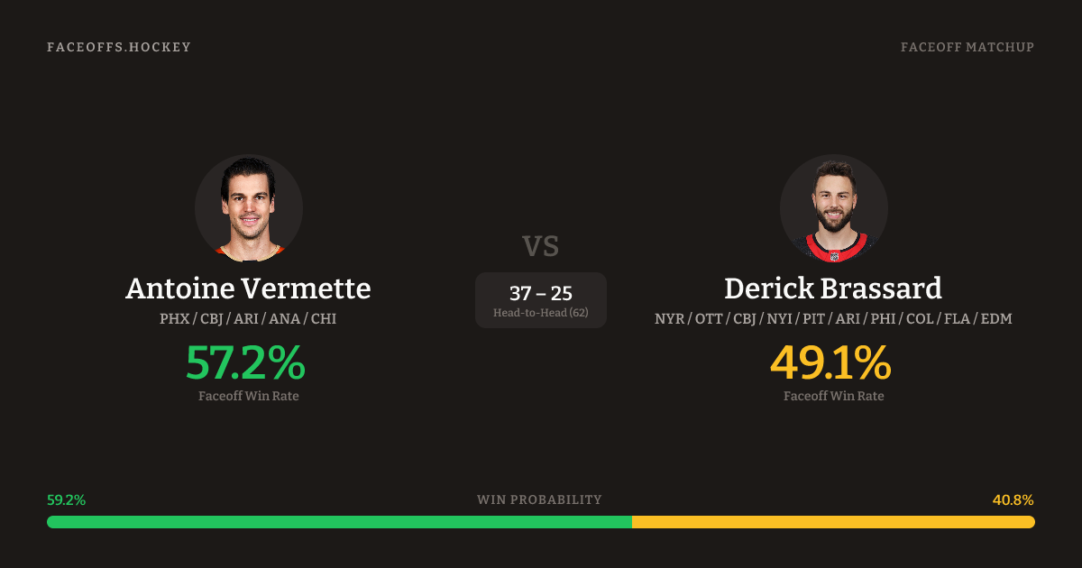 Antoine Vermette vs Derick Brassard — Faceoff Head-to-Head