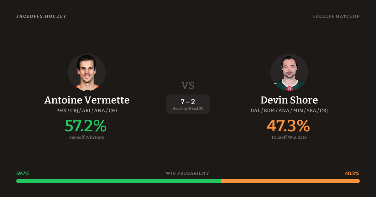 Antoine Vermette vs Devin Shore — Faceoff Head-to-Head