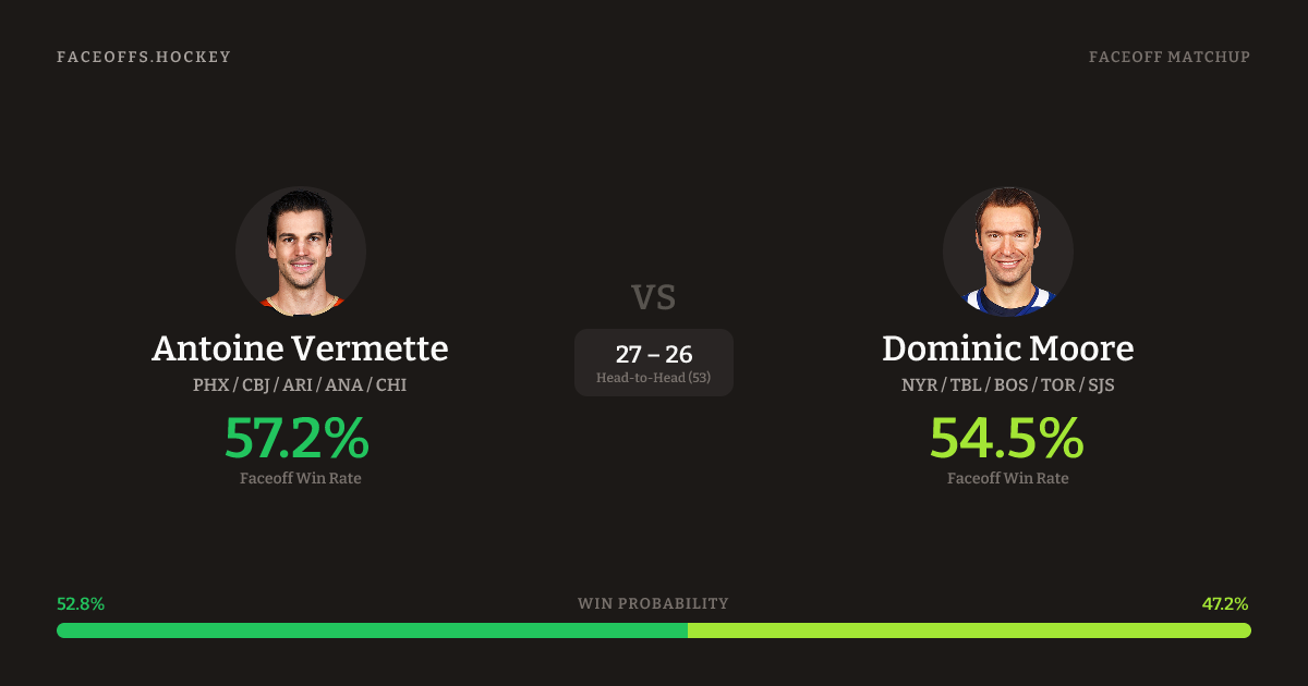 Antoine Vermette vs Dominic Moore — Faceoff Head-to-Head