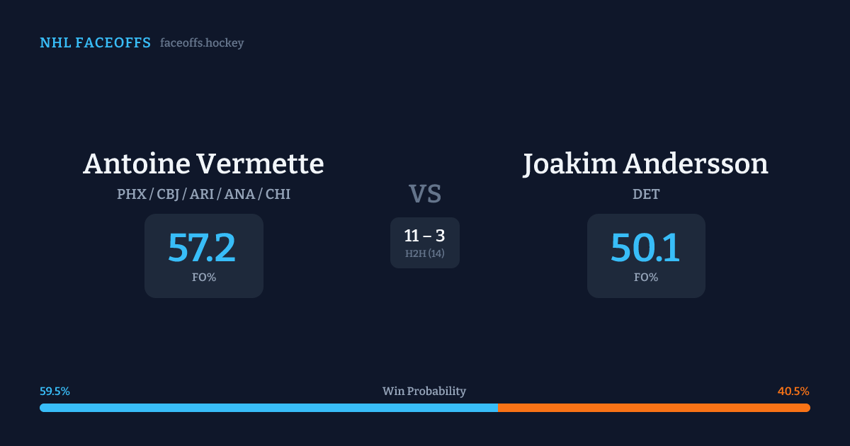 Antoine Vermette vs Joakim Andersson — Faceoff Head-to-Head