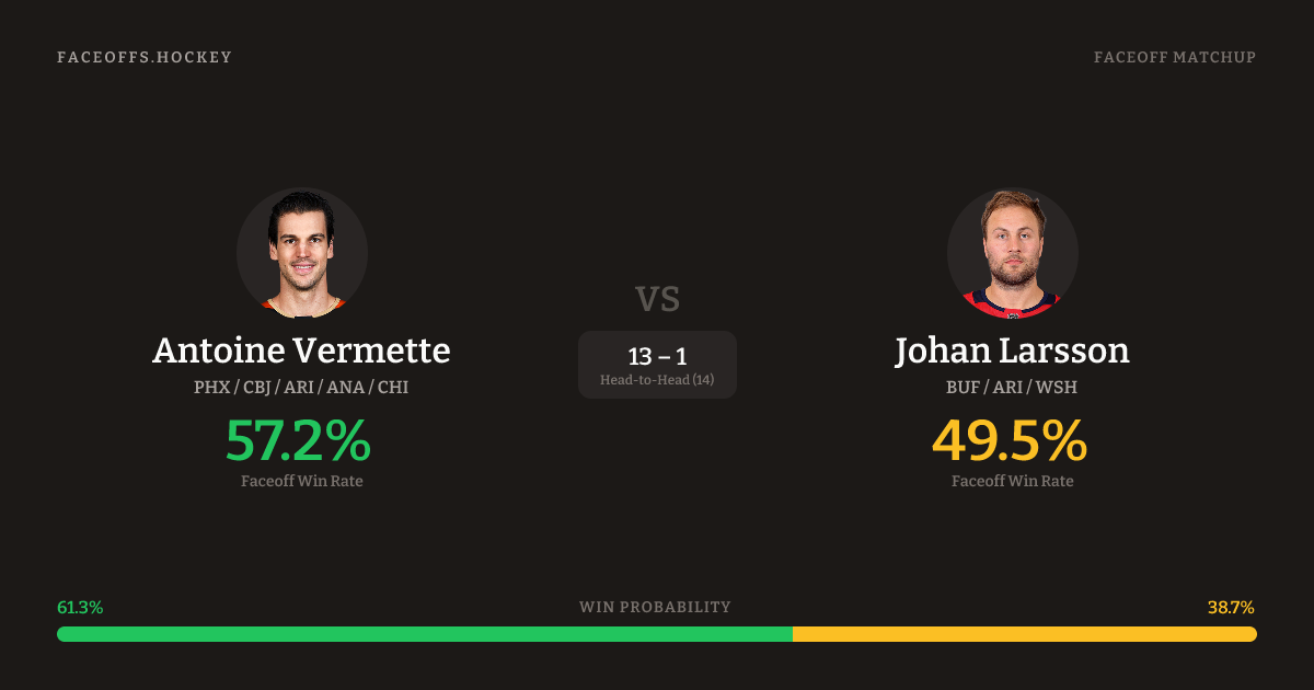 Antoine Vermette vs Johan Larsson — Faceoff Head-to-Head