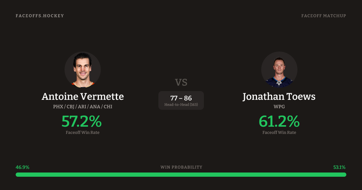 Antoine Vermette vs Jonathan Toews — Faceoff Head-to-Head