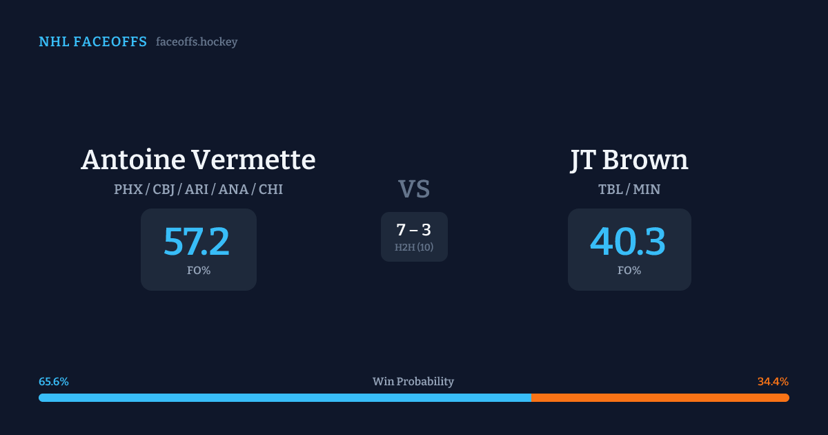 Antoine Vermette vs JT Brown — Faceoff Head-to-Head