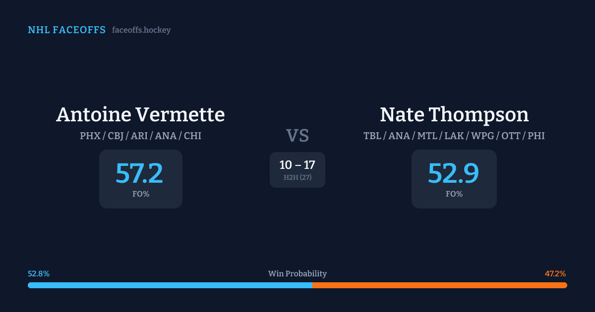 Antoine Vermette vs Nate Thompson — Faceoff Head-to-Head