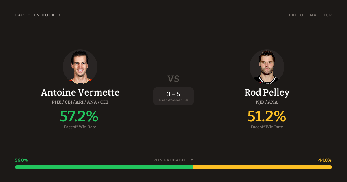 Antoine Vermette vs Rod Pelley — Faceoff Head-to-Head