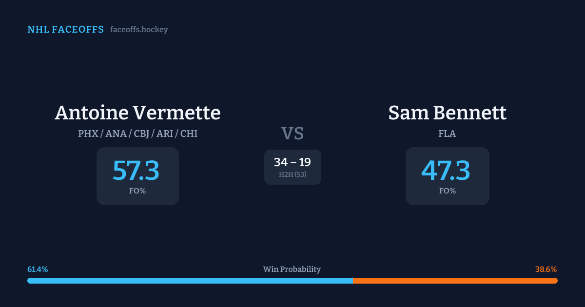 Antoine Vermette vs Sam Bennett — Faceoff Head-to-Head