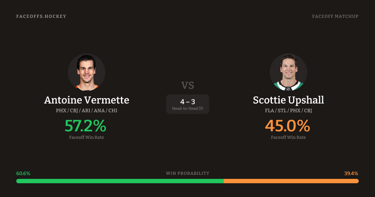 Antoine Vermette vs Scottie Upshall — Faceoff Head-to-Head