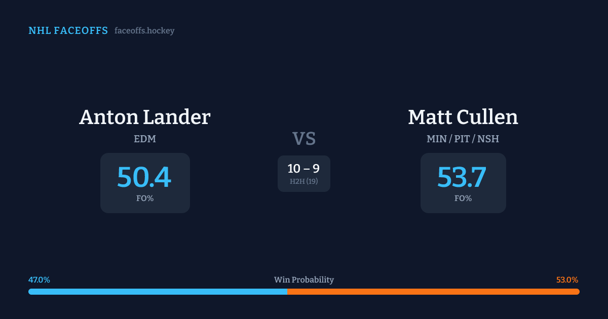 Anton Lander vs Matt Cullen — Faceoff Head-to-Head