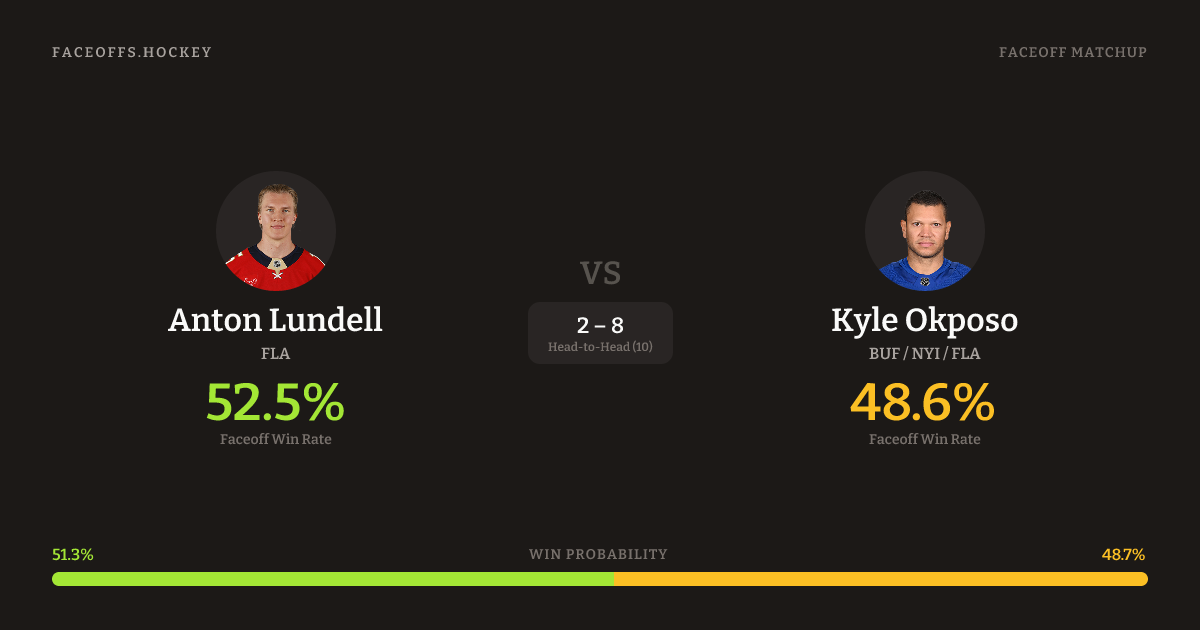 Anton Lundell vs Kyle Okposo — Faceoff Head-to-Head