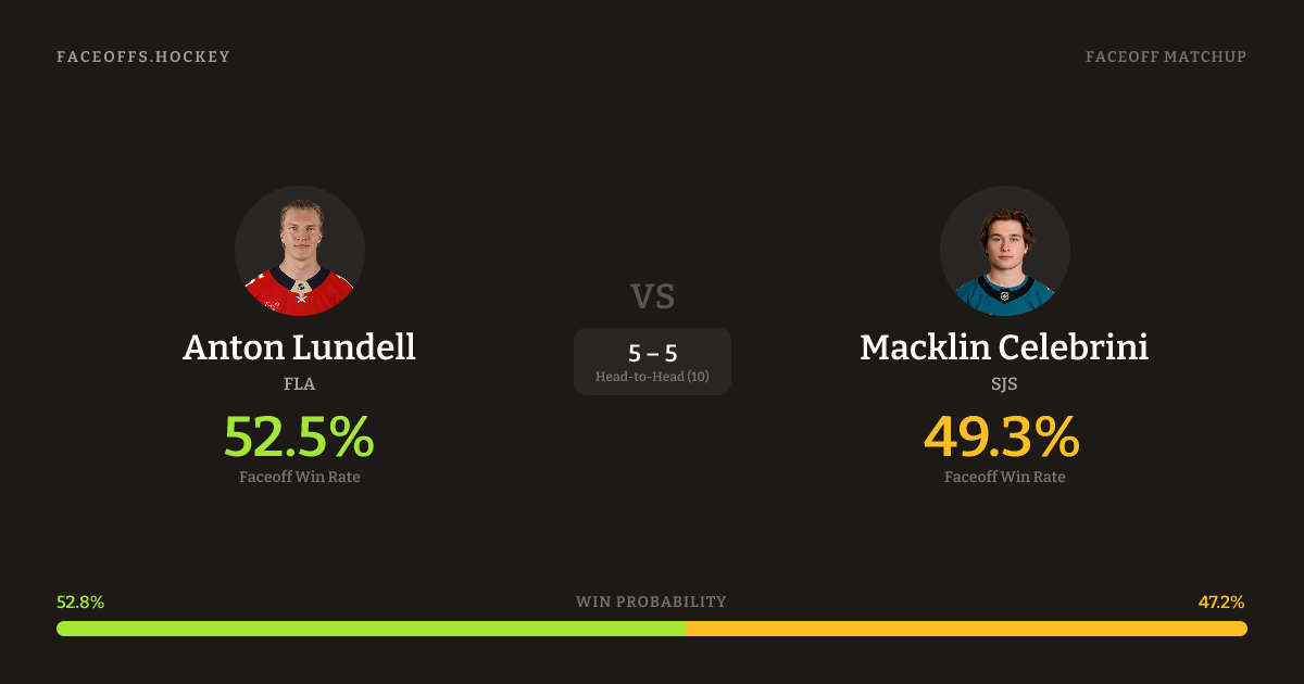 Anton Lundell vs Macklin Celebrini — Faceoff Head-to-Head