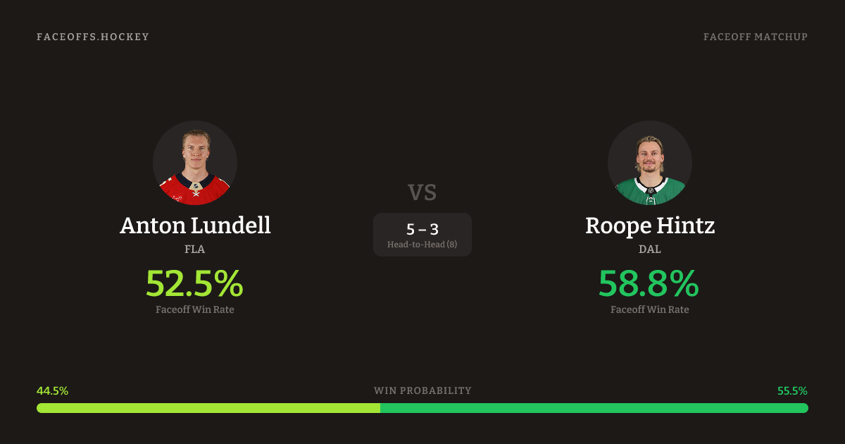Anton Lundell vs Roope Hintz — Faceoff Head-to-Head