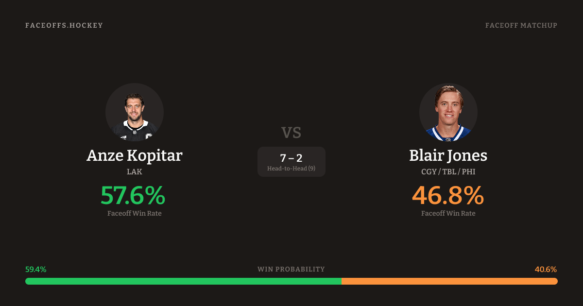 Anze Kopitar vs Blair Jones — Faceoff Head-to-Head