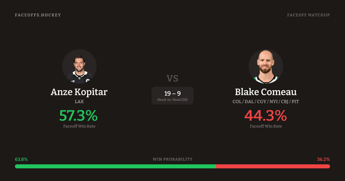 Anze Kopitar vs Blake Comeau — Faceoff Head-to-Head