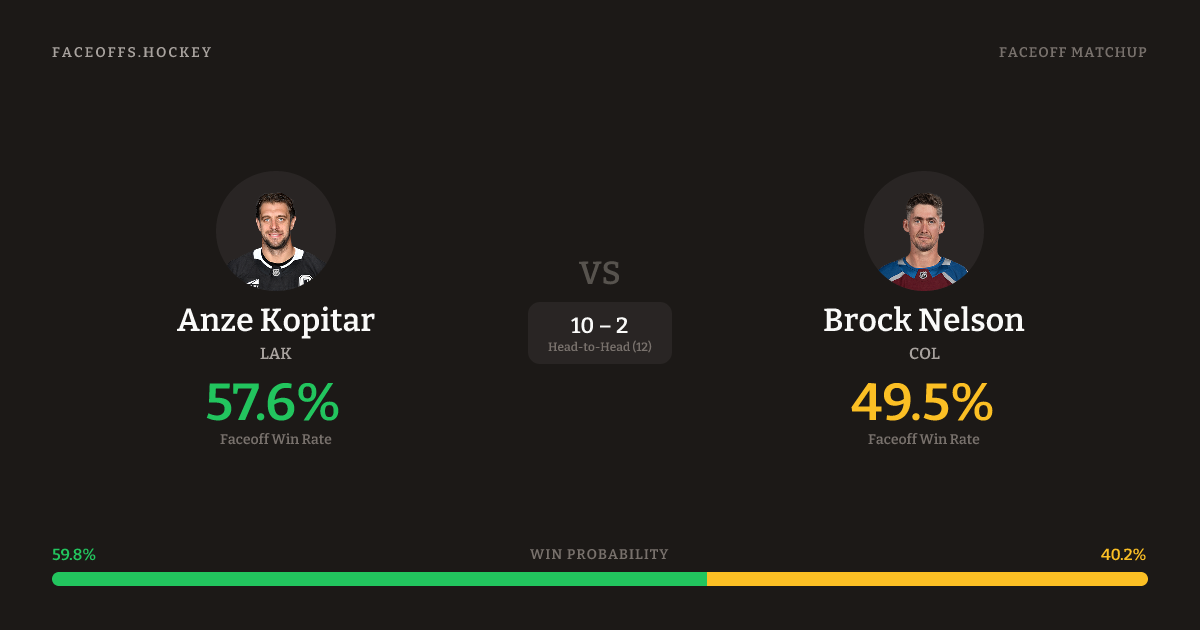 Anze Kopitar vs Brock Nelson — Faceoff Head-to-Head