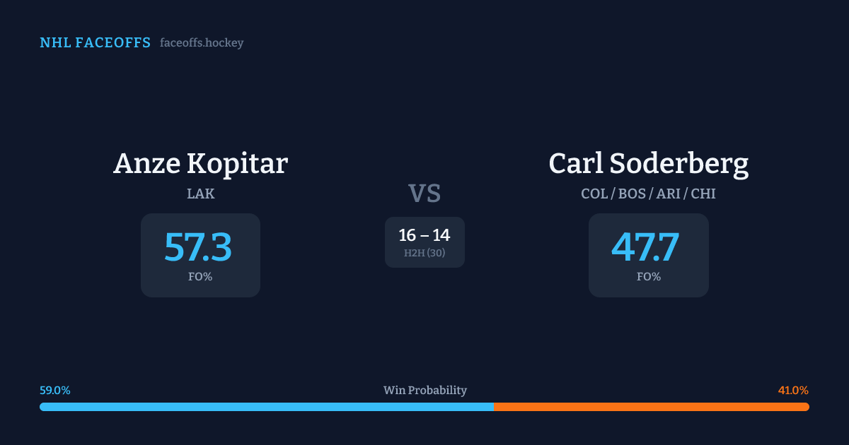 Anze Kopitar vs Carl Soderberg — Faceoff Head-to-Head
