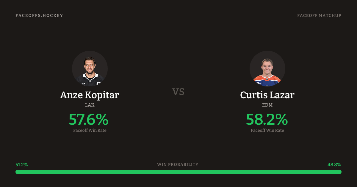 Anze Kopitar vs Curtis Lazar — Faceoff Head-to-Head