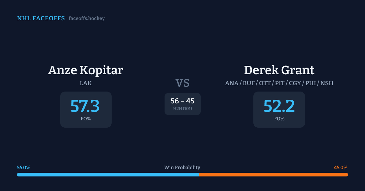 Anze Kopitar vs Derek Grant — Faceoff Head-to-Head
