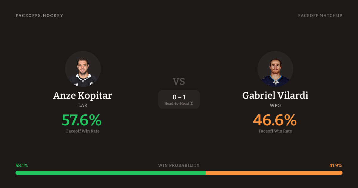 Anze Kopitar vs Gabriel Vilardi — Faceoff Head-to-Head