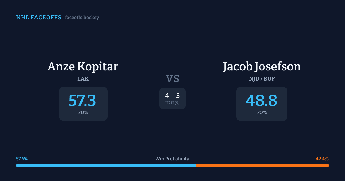 Anze Kopitar vs Jacob Josefson — Faceoff Head-to-Head
