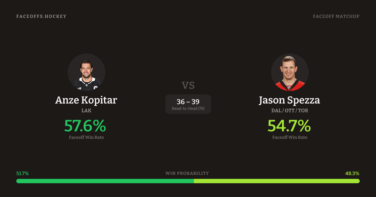 Anze Kopitar vs Jason Spezza — Faceoff Head-to-Head