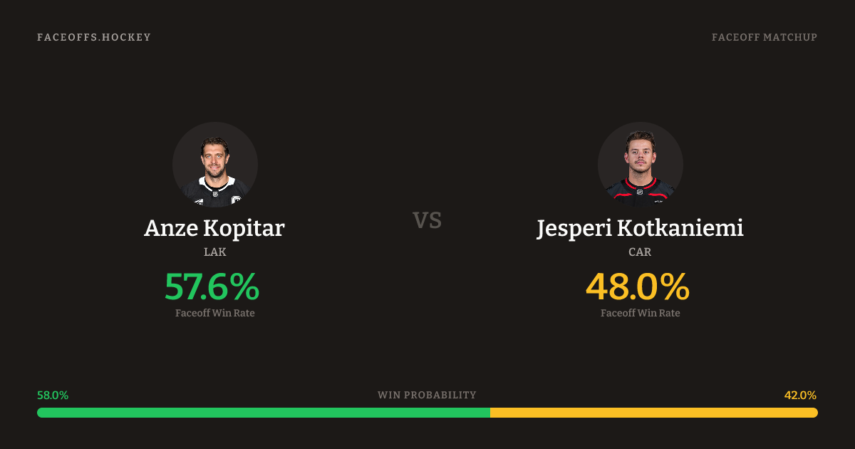 Anze Kopitar vs Jesperi Kotkaniemi — Faceoff Head-to-Head