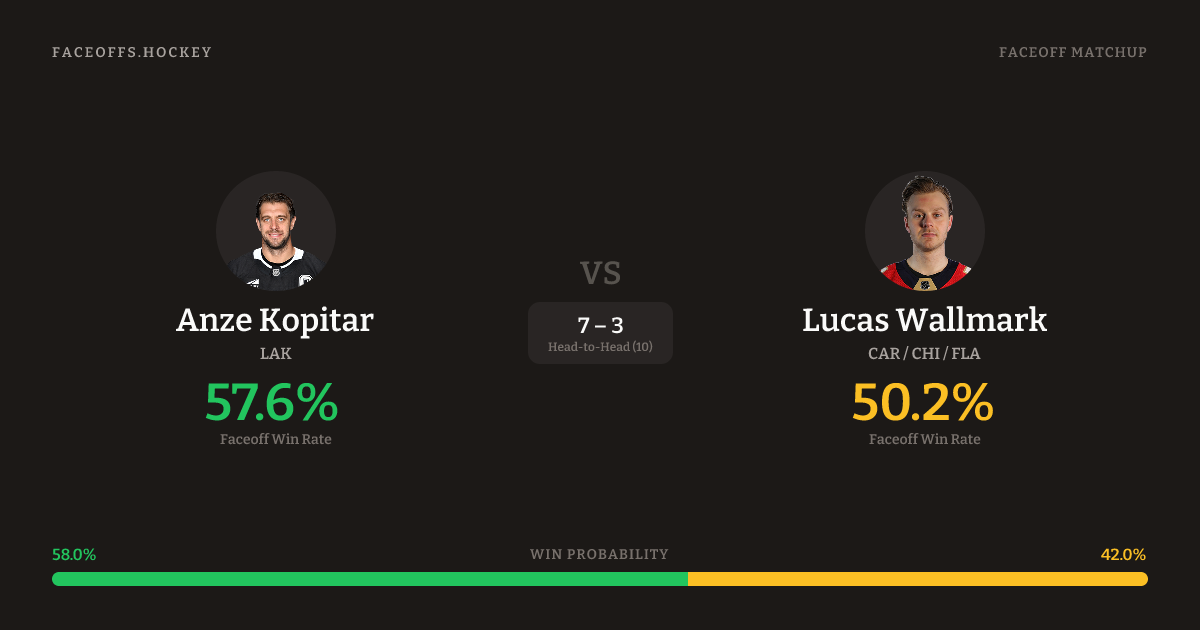 Anze Kopitar vs Lucas Wallmark — Faceoff Head-to-Head