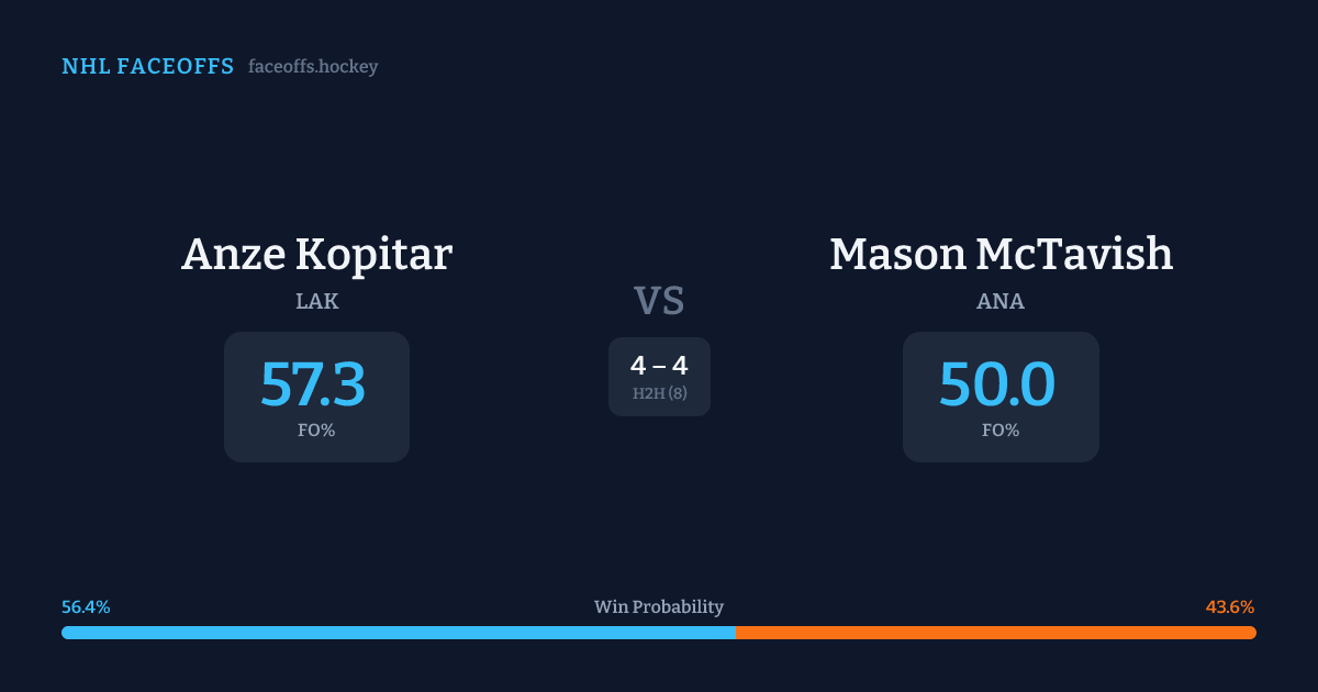Anze Kopitar vs Mason McTavish — Faceoff Head-to-Head