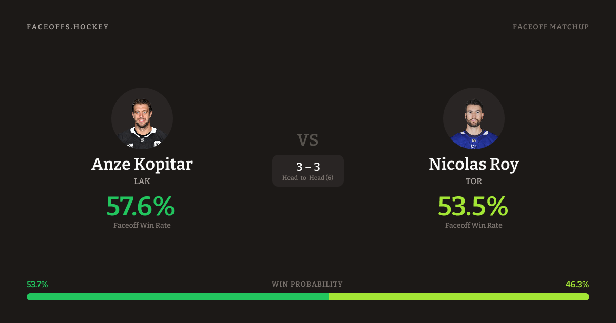 Anze Kopitar vs Nicolas Roy — Faceoff Head-to-Head