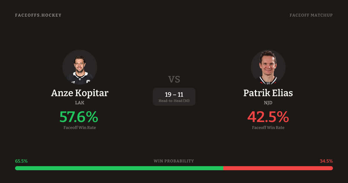 Anze Kopitar vs Patrik Elias — Faceoff Head-to-Head