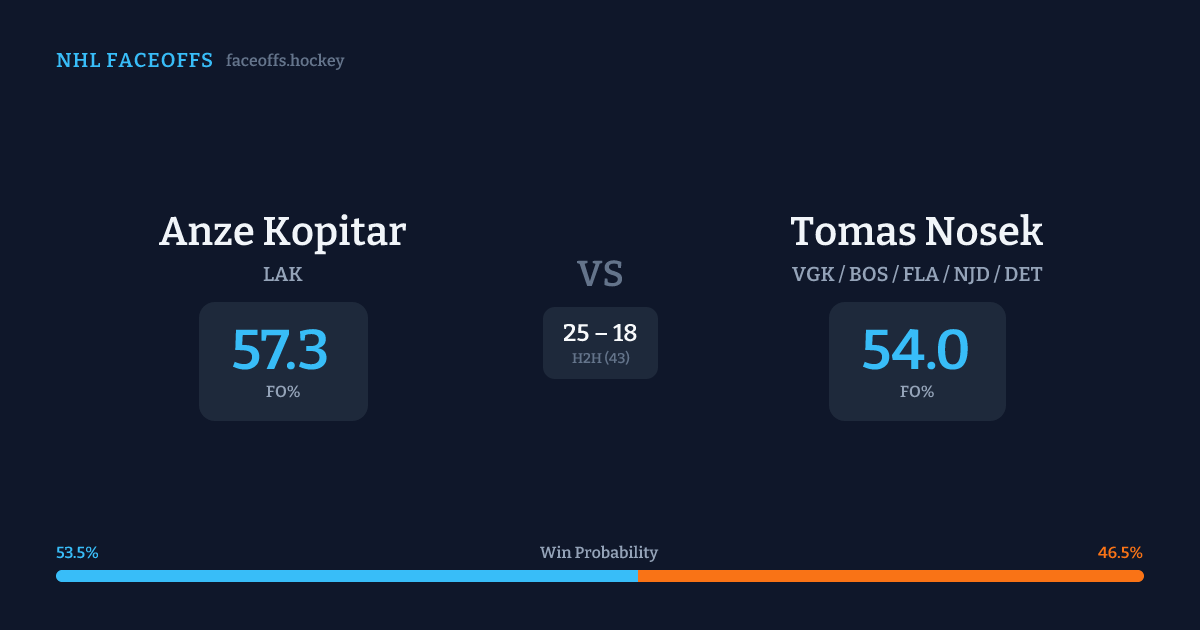 Anze Kopitar vs Tomas Nosek — Faceoff Head-to-Head