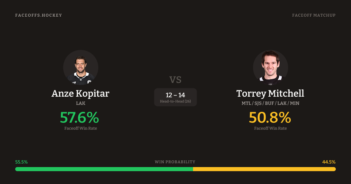 Anze Kopitar vs Torrey Mitchell — Faceoff Head-to-Head