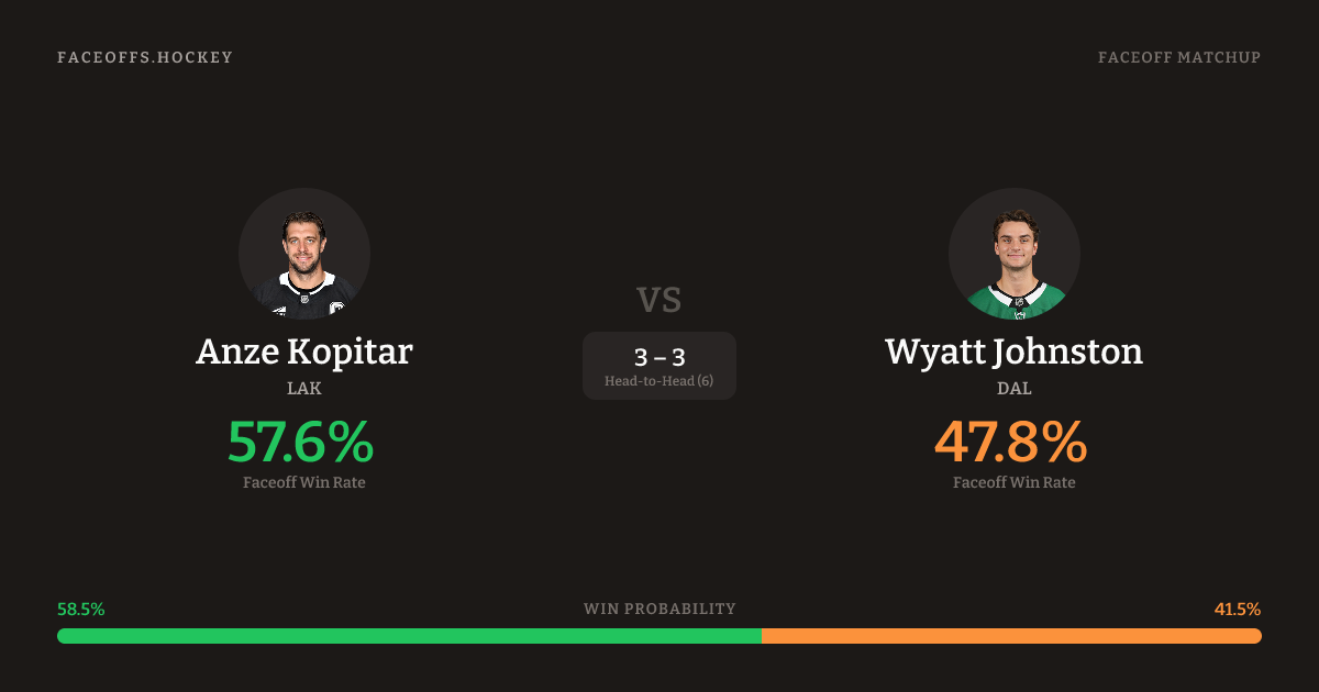 Anze Kopitar vs Wyatt Johnston — Faceoff Head-to-Head