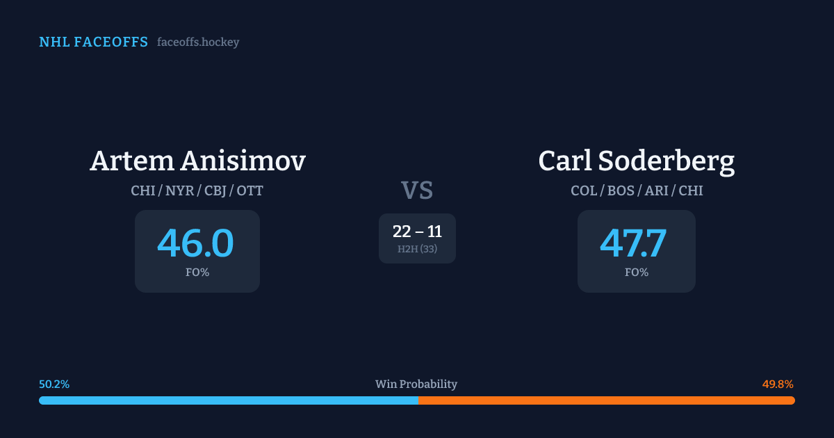 Artem Anisimov vs Carl Soderberg — Faceoff Head-to-Head