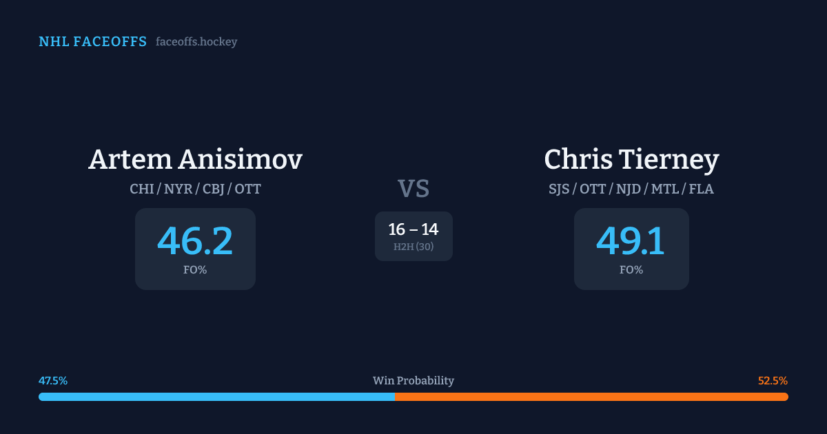 Artem Anisimov vs Chris Tierney — Faceoff Head-to-Head