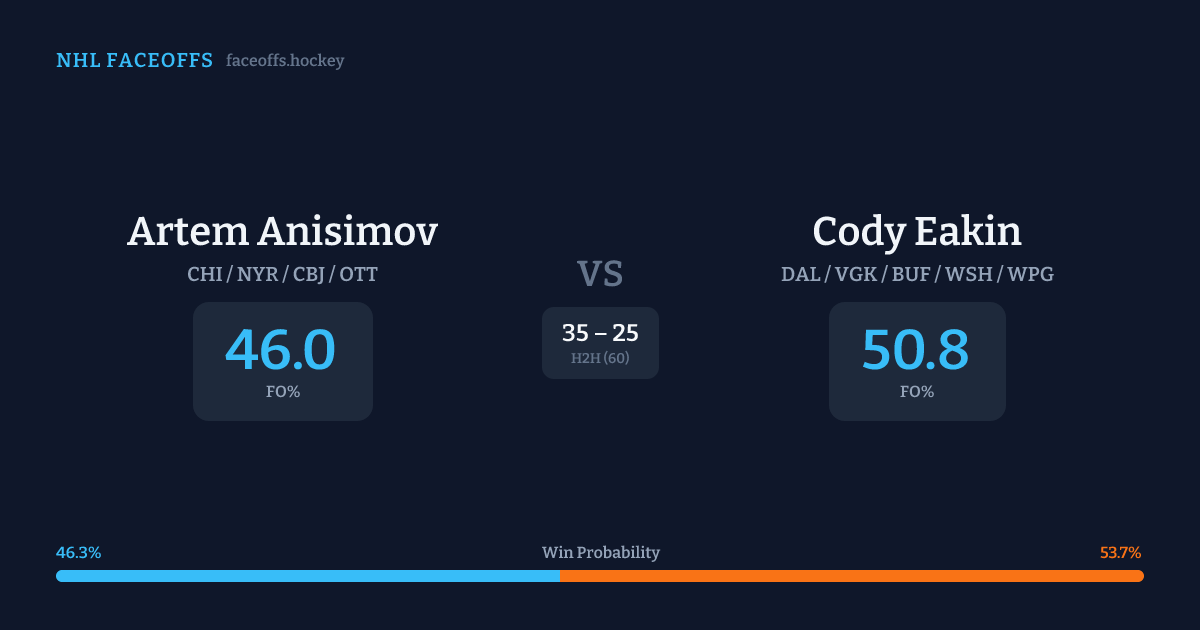 Artem Anisimov vs Cody Eakin — Faceoff Head-to-Head