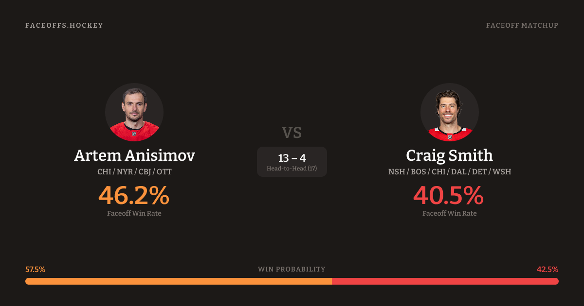 Artem Anisimov vs Craig Smith — Faceoff Head-to-Head