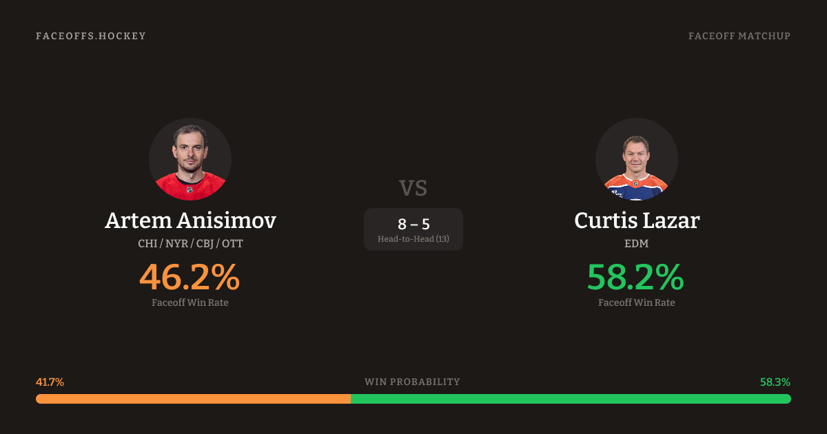 Artem Anisimov vs Curtis Lazar — Faceoff Head-to-Head