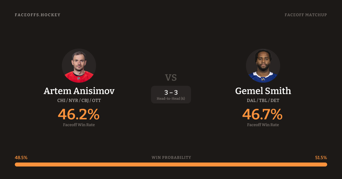 Artem Anisimov vs Gemel Smith — Faceoff Head-to-Head