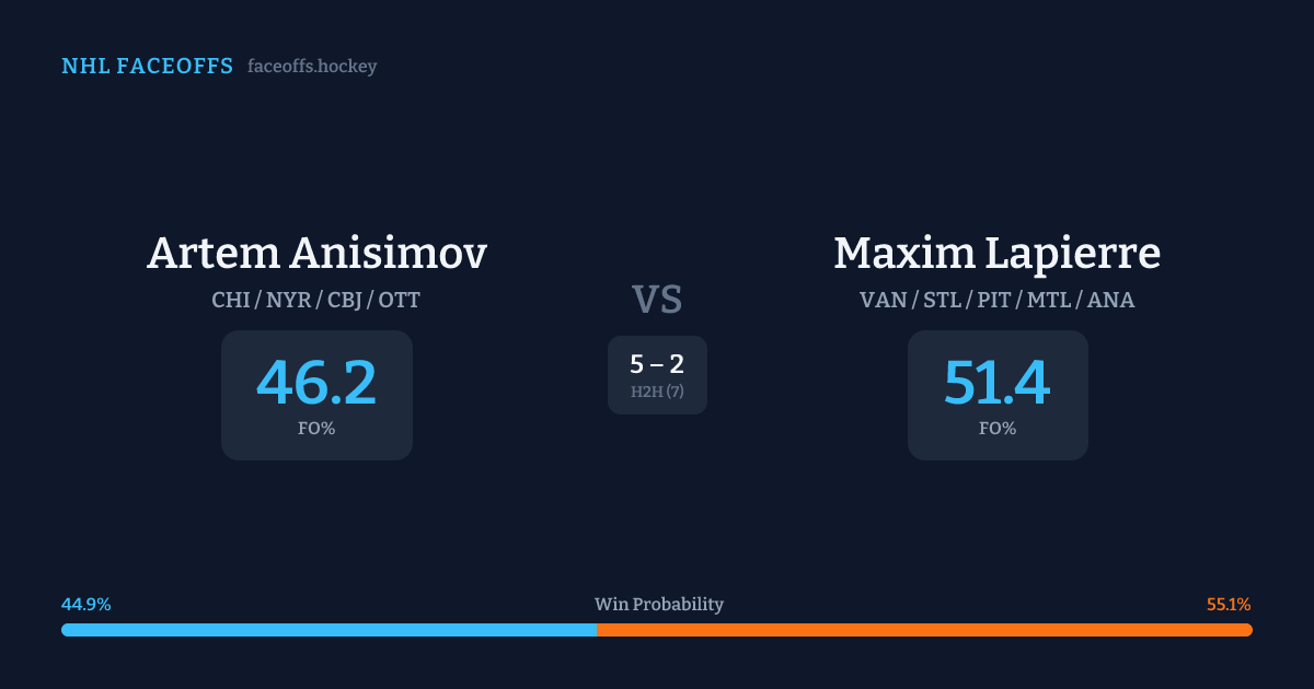 Artem Anisimov vs Maxim Lapierre — Faceoff Head-to-Head