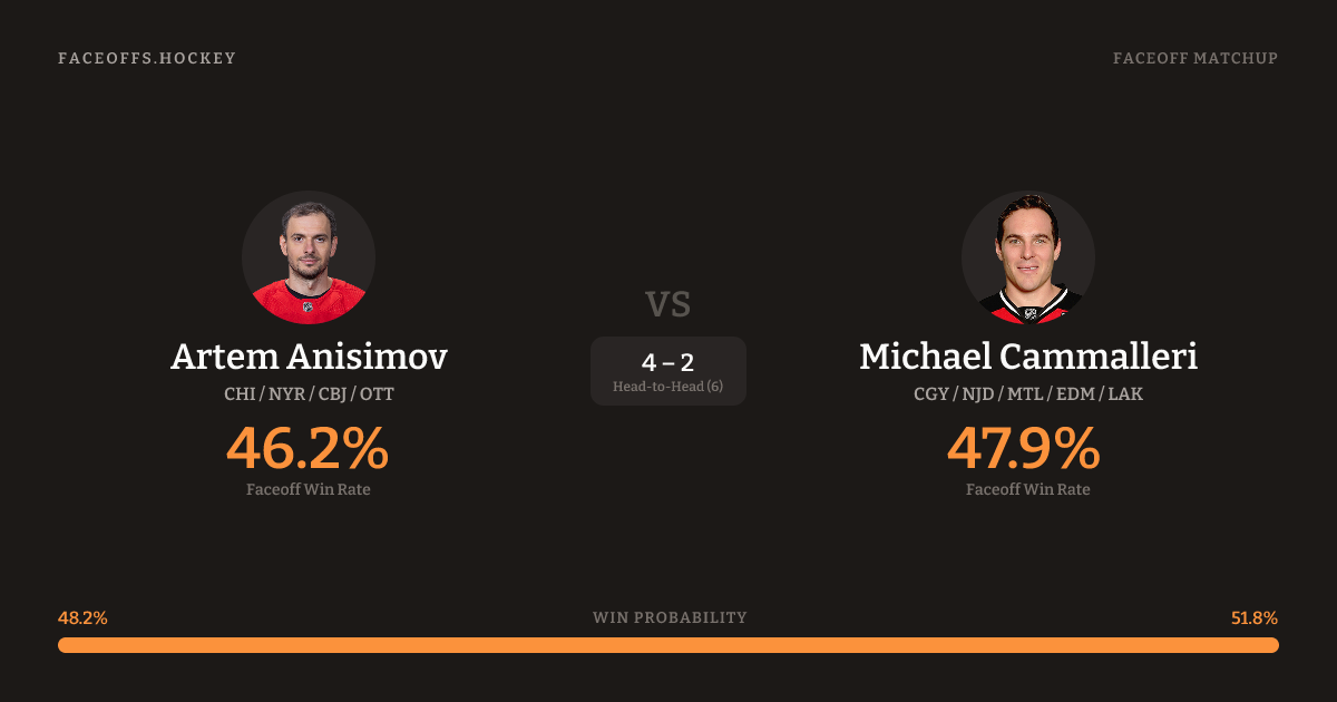 Artem Anisimov vs Michael Cammalleri — Faceoff Head-to-Head