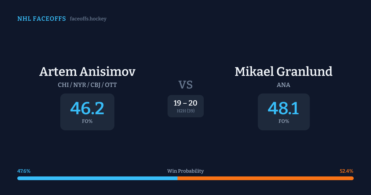 Artem Anisimov vs Mikael Granlund — Faceoff Head-to-Head