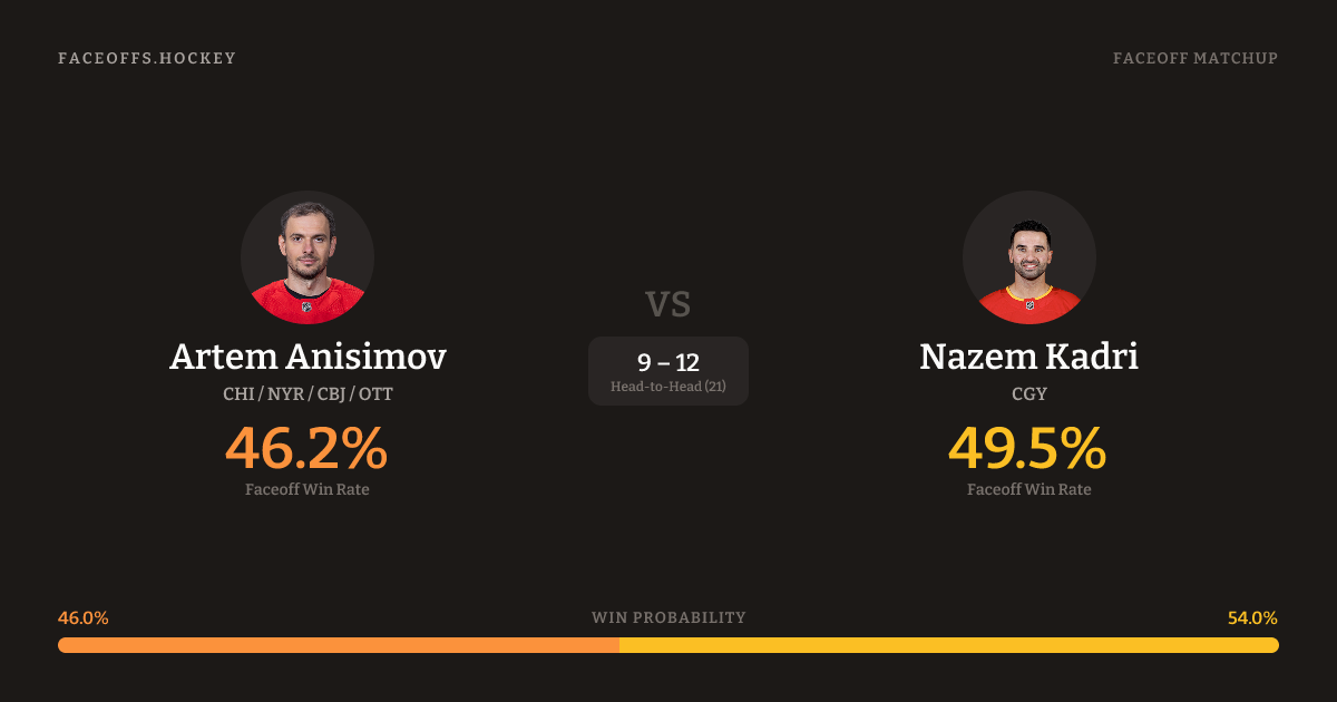 Artem Anisimov vs Nazem Kadri — Faceoff Head-to-Head