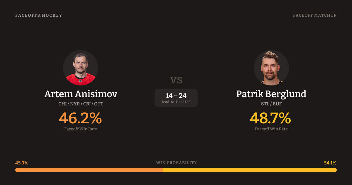 Artem Anisimov vs Patrik Berglund — Faceoff Head-to-Head