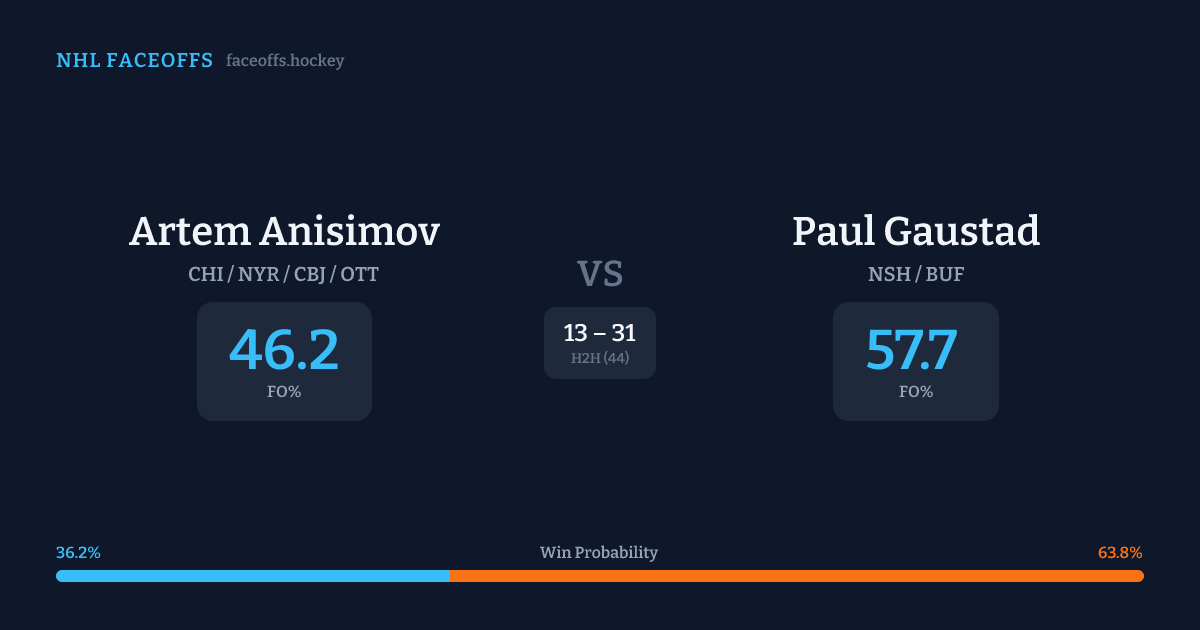 Artem Anisimov vs Paul Gaustad — Faceoff Head-to-Head