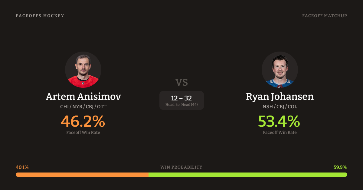 Artem Anisimov vs Ryan Johansen — Faceoff Head-to-Head
