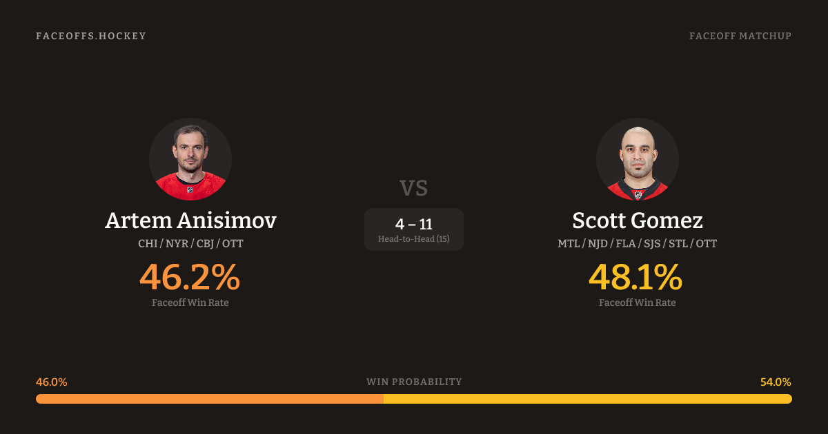 Artem Anisimov vs Scott Gomez — Faceoff Head-to-Head