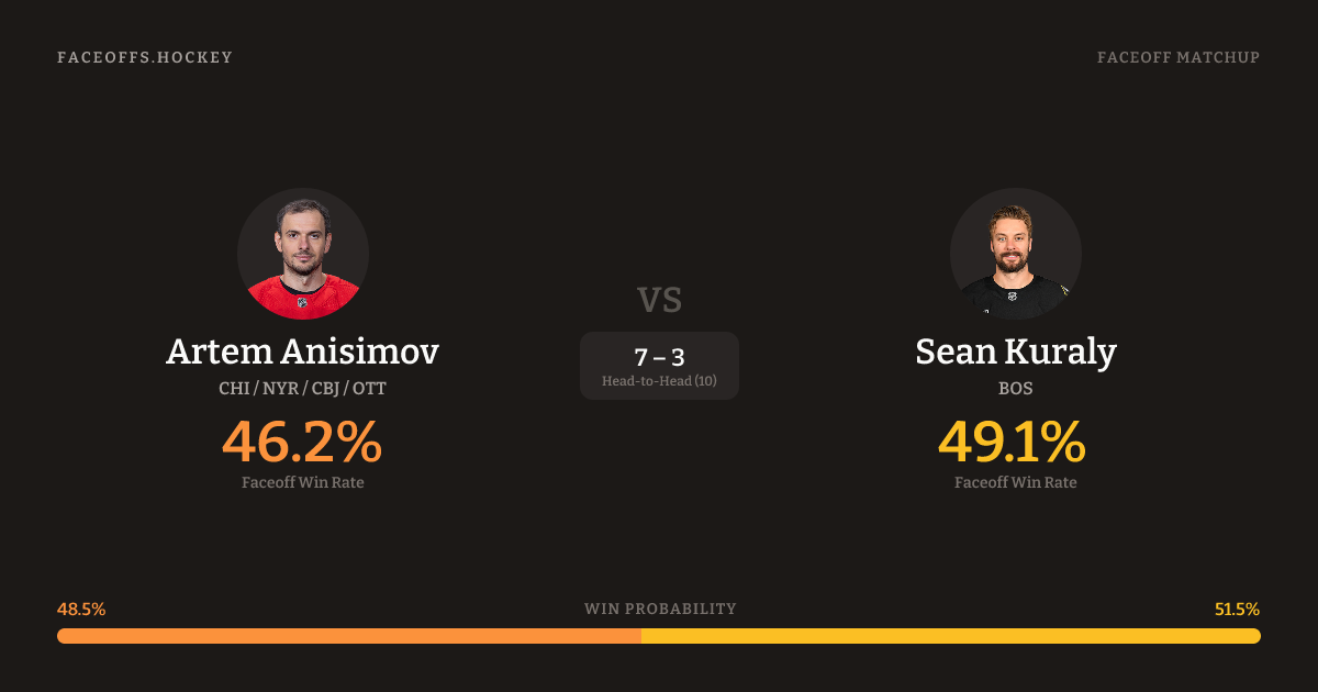 Artem Anisimov vs Sean Kuraly — Faceoff Head-to-Head