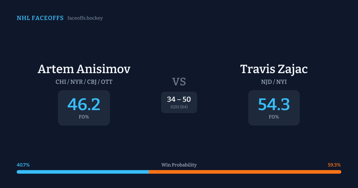 Artem Anisimov vs Travis Zajac — Faceoff Head-to-Head