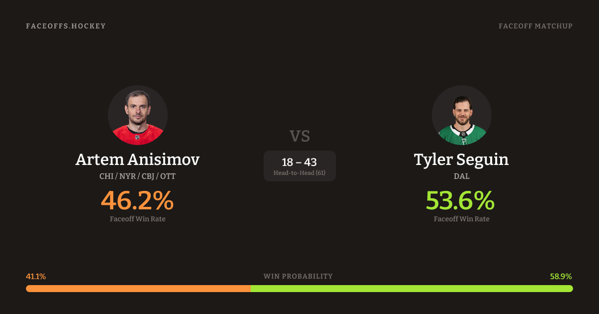 Artem Anisimov vs Tyler Seguin — Faceoff Head-to-Head