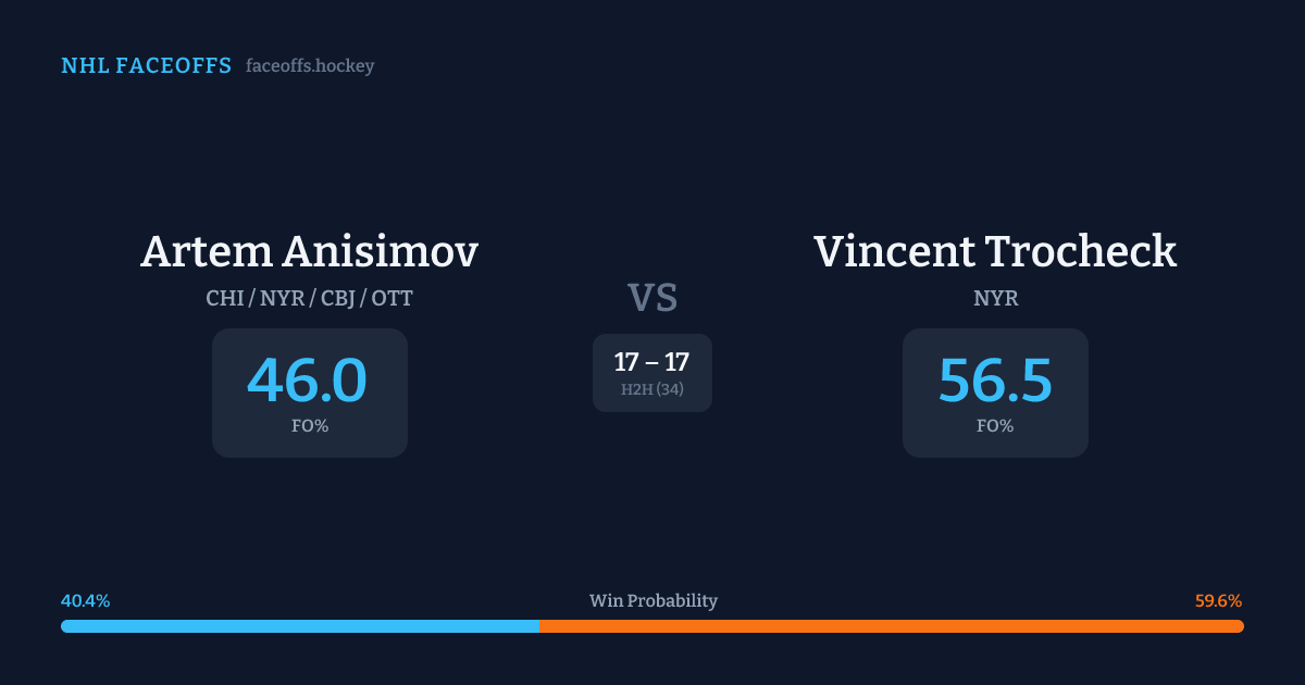 Artem Anisimov vs Vincent Trocheck — Faceoff Head-to-Head